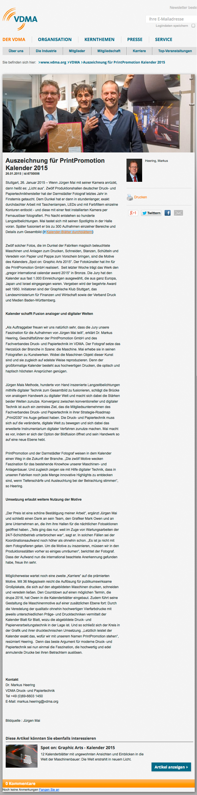 Preisverleihung des gregor-international-calender-award 22.01.2015